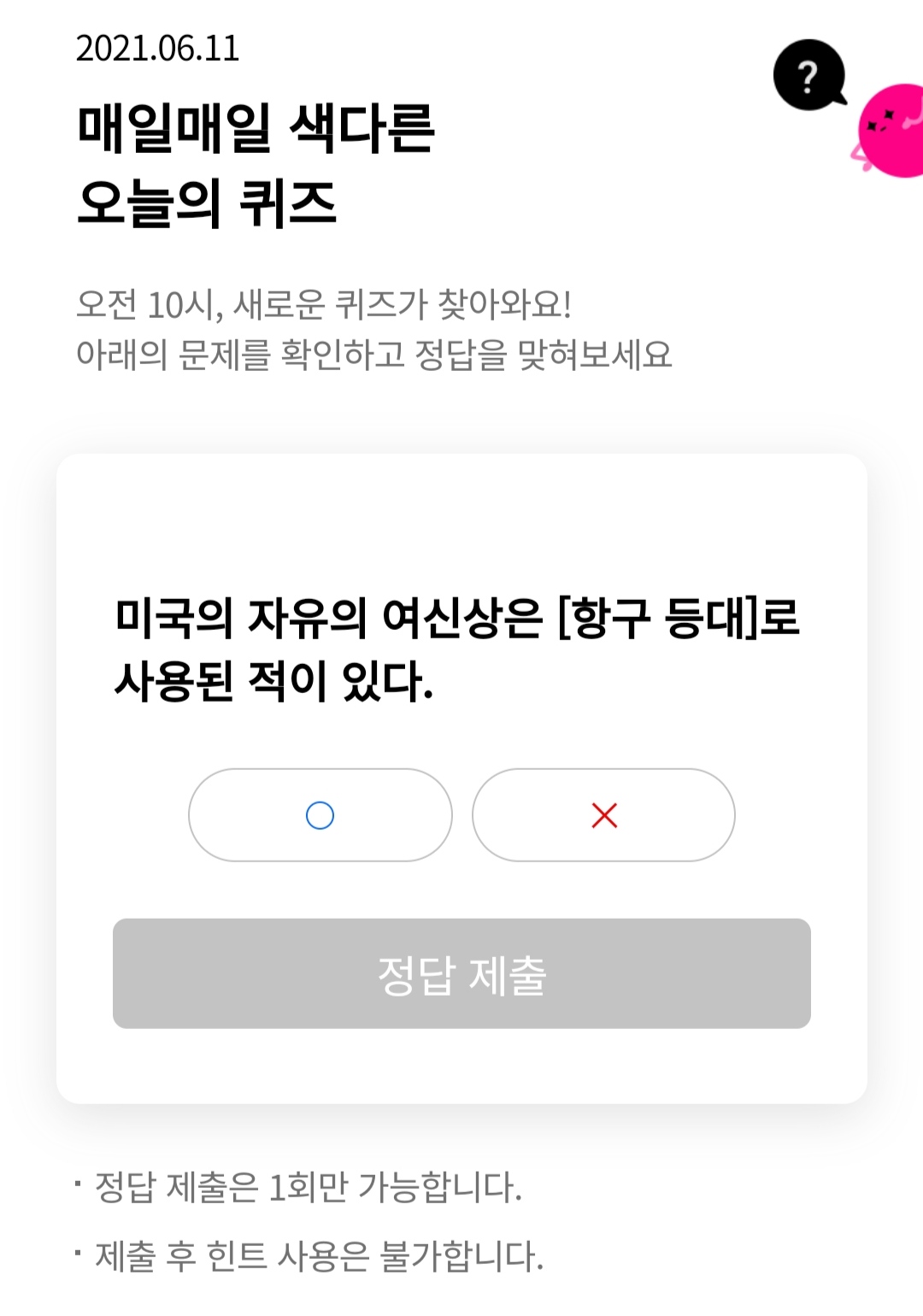 오늘의 퀴즈는 자유여신상 입니다ㅎ