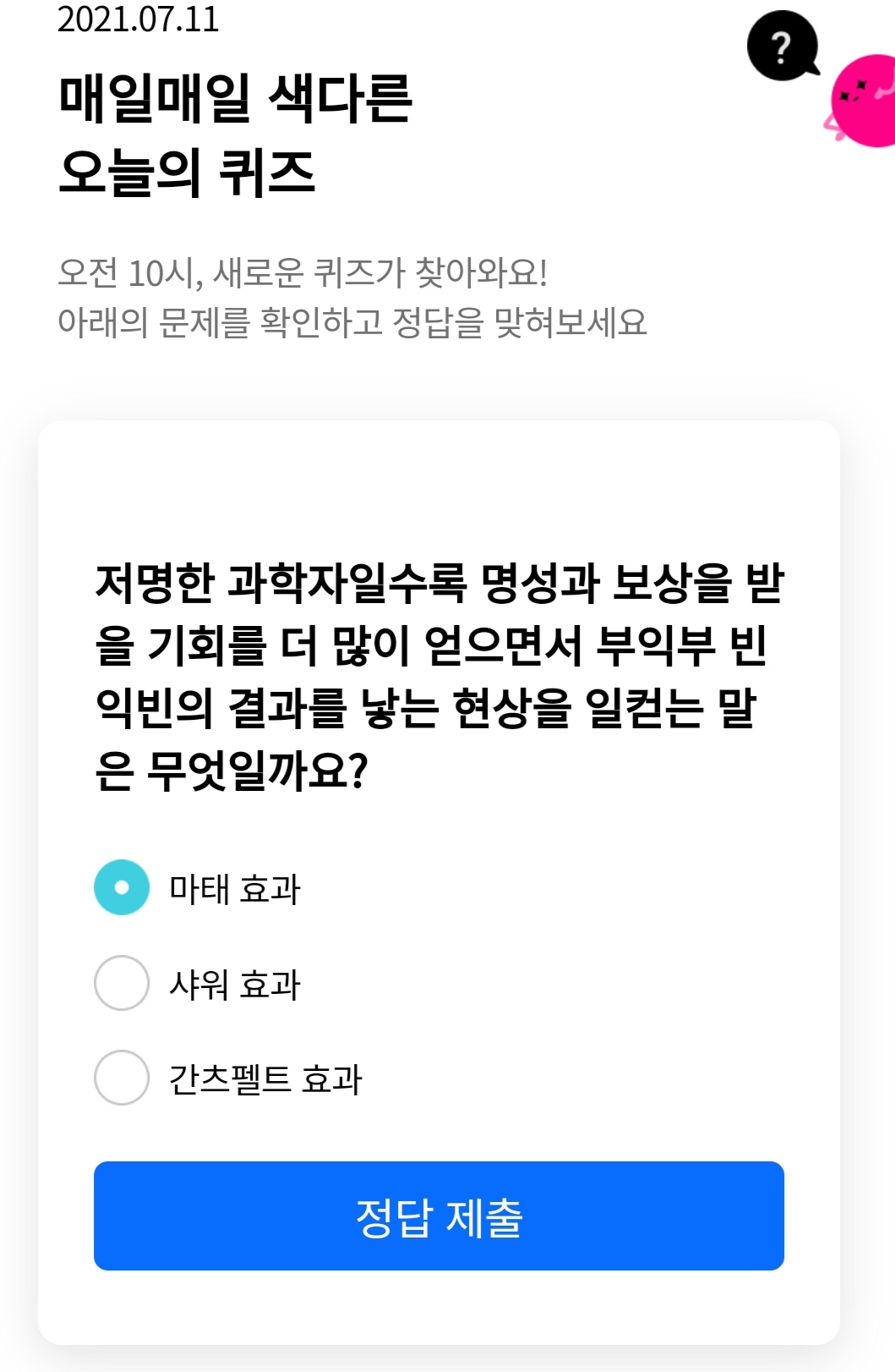 리브메이트 오늘의퀴즈였습니다ㅎ