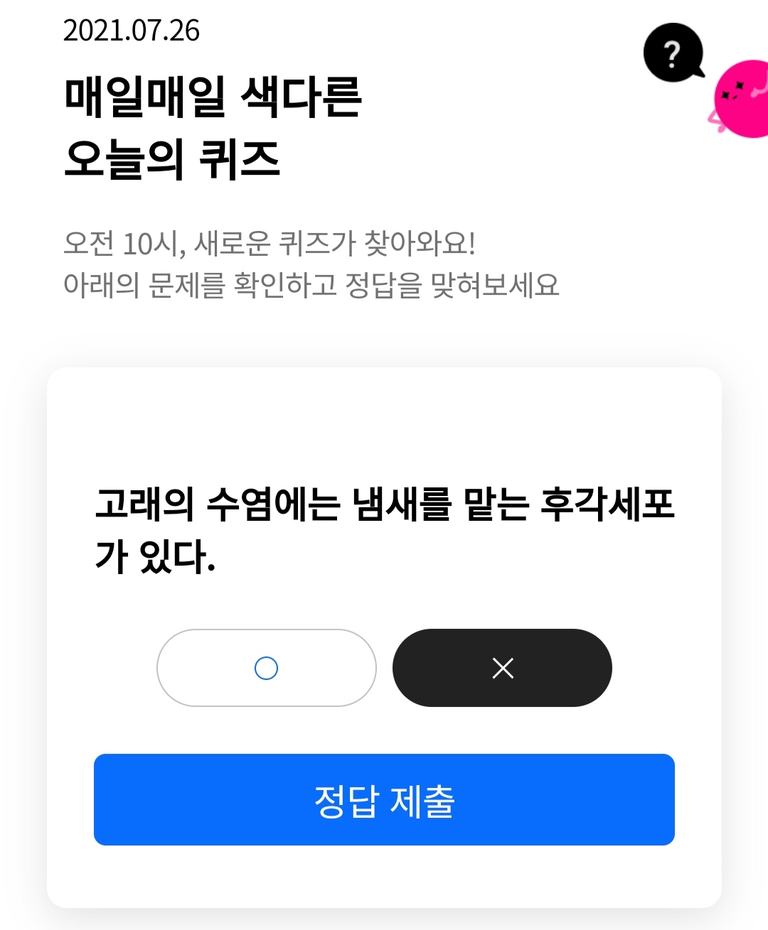 | 리브메이트-오늘의퀴즈(2021.7.23) (0) | 2021.07.23 |
