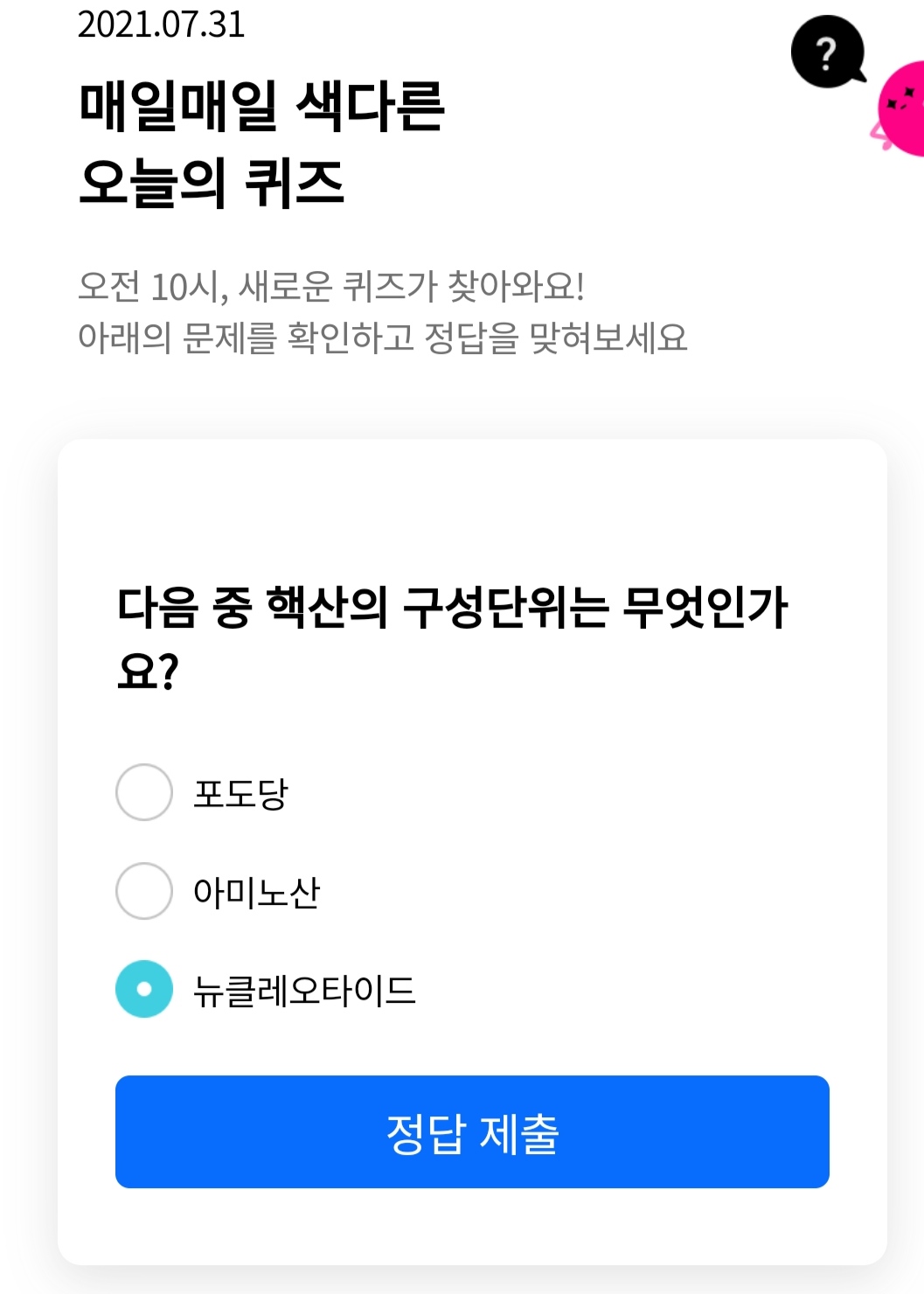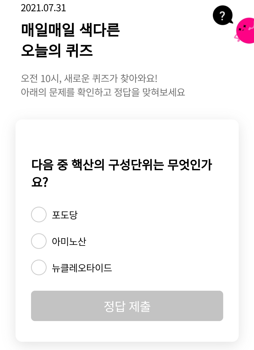 정답은 뉴클레오타이드 입니다ㅎㅎ