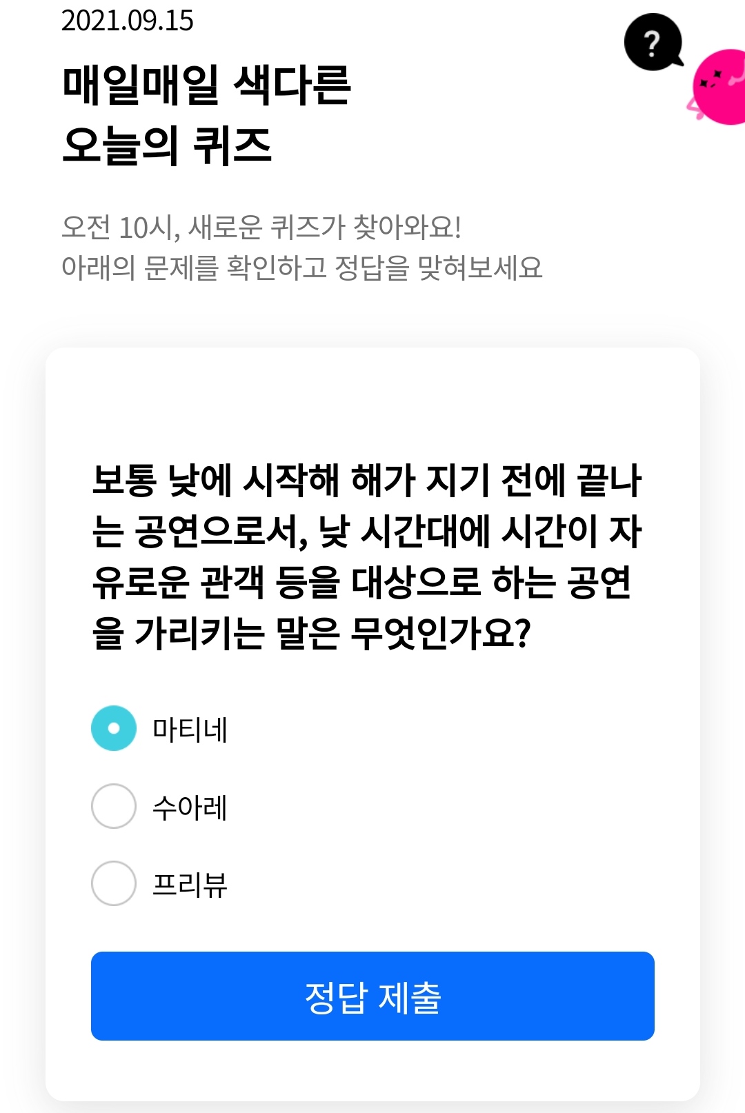 정답은 마티네 입니다ㅎ
