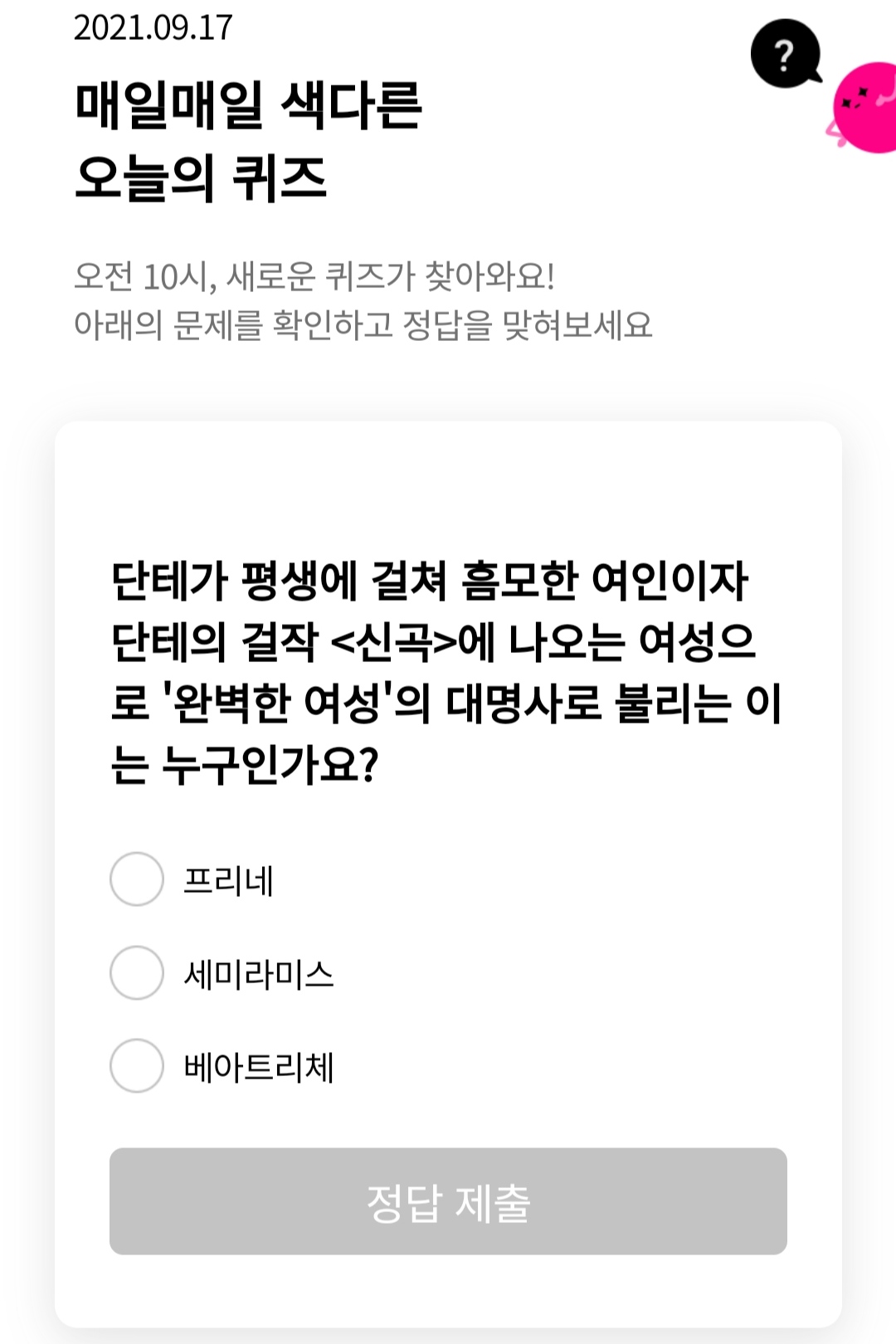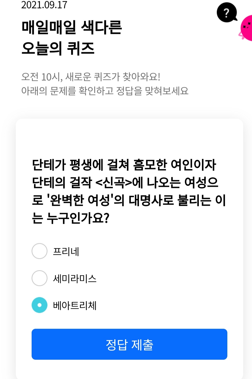 정답은 베아트리체입니다ㅎ