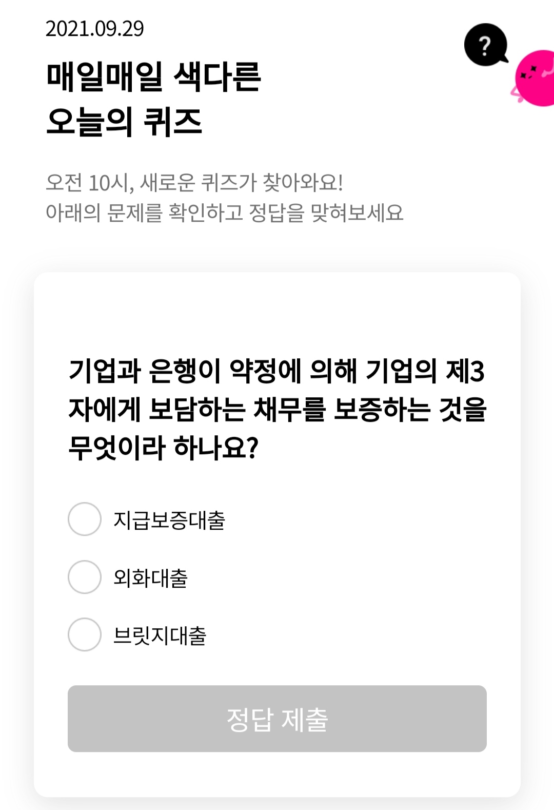 기업과 은행이 약정에 의해 기업의 제 3자에게 부담하는 채무를 보증하는것은?