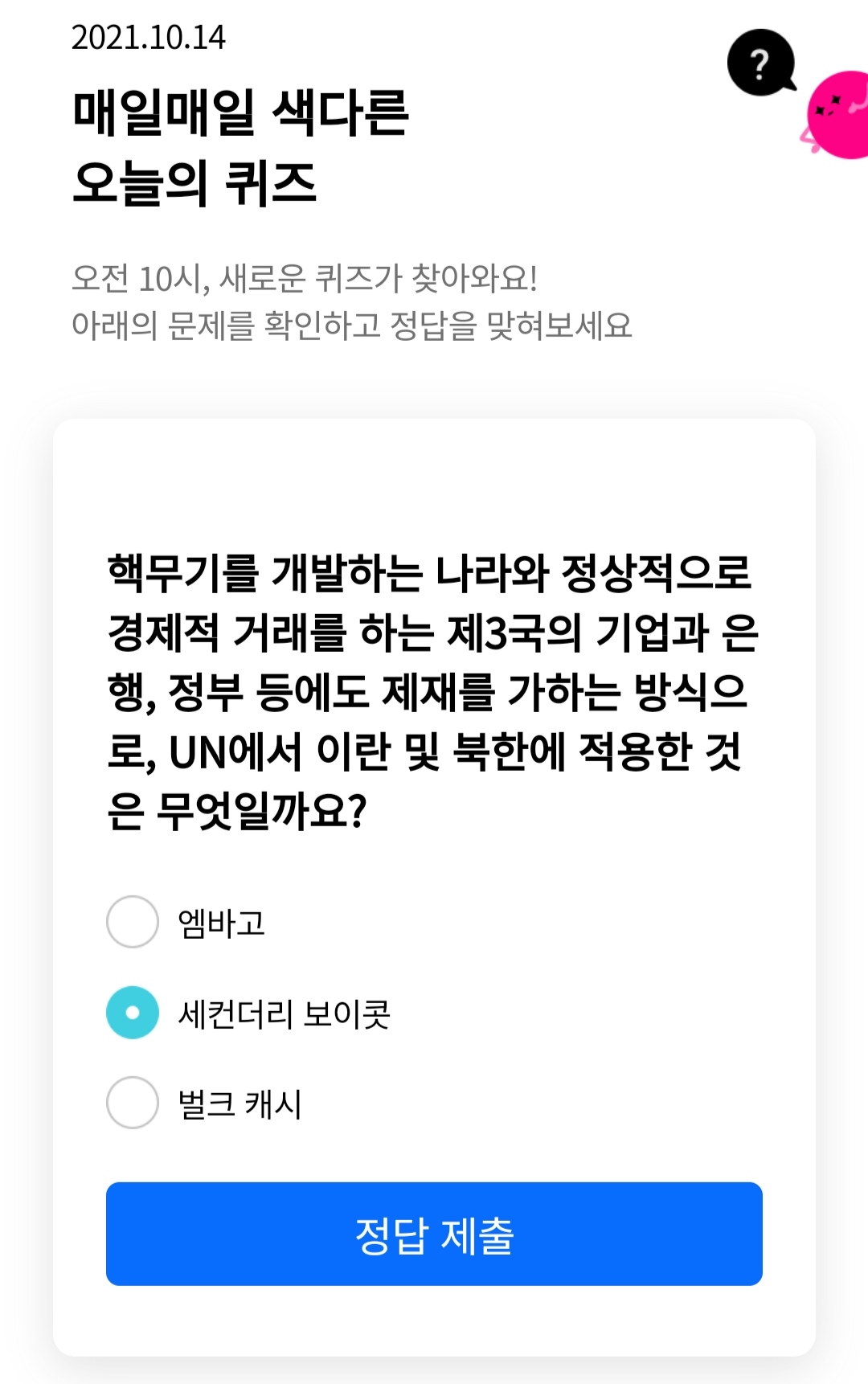 핵무기를 개발하는 나라와 정상적으로 경제적거래를 하는 제 3국의 기업과 은행 정부등에도 제재를 가하는방식으로 UN에서 이란이나 북한에 적용하는것은?