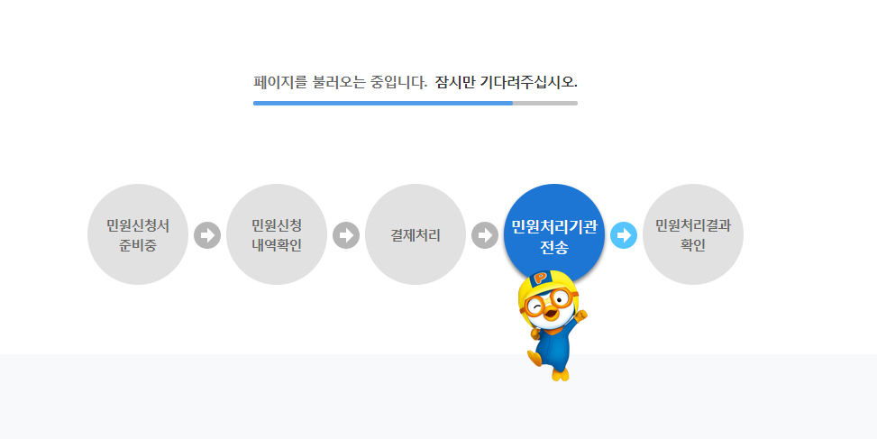 저렇게 계속 뽀로로가 옮겨 다니면서 완료가 되고 신청내역이 똭!!!