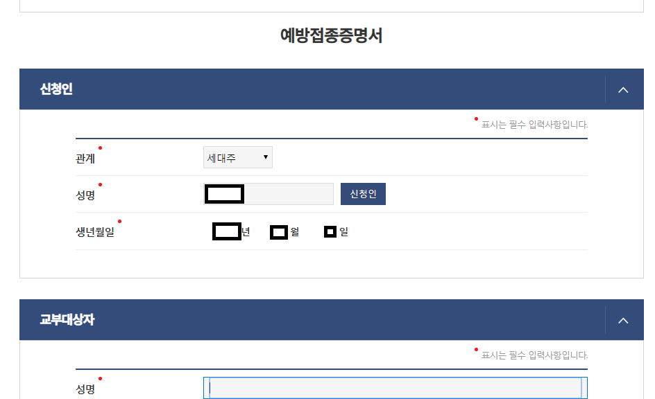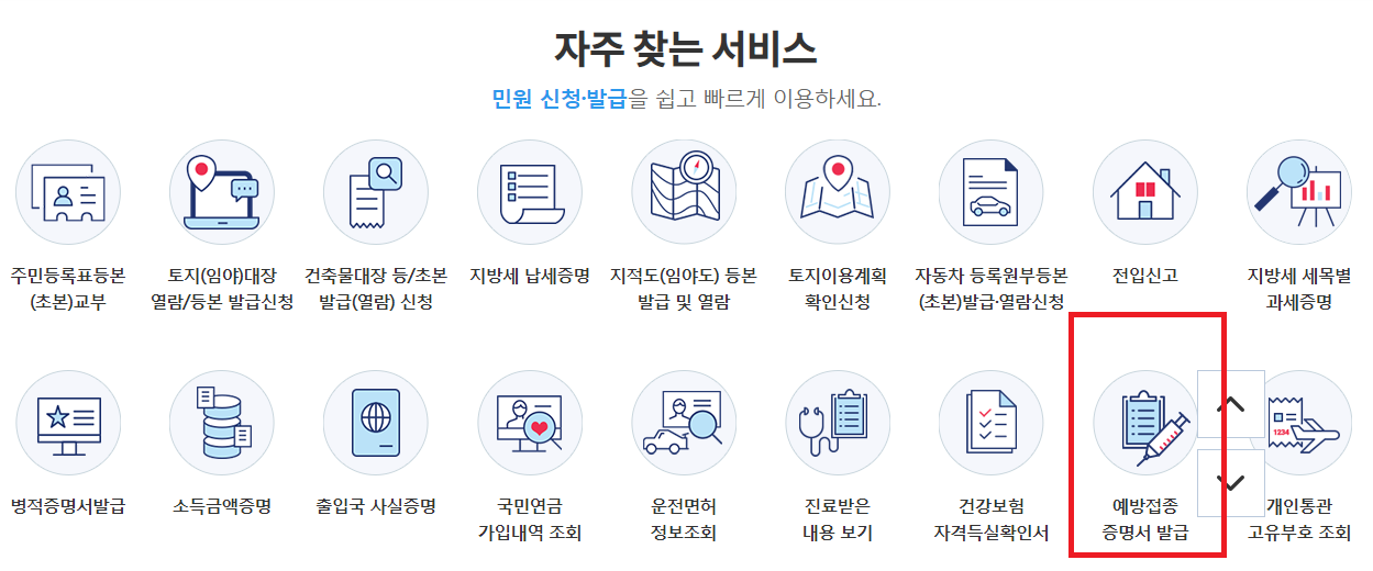 아래쪽에 예방접종 증명서 발급이 보입니다~ ^^