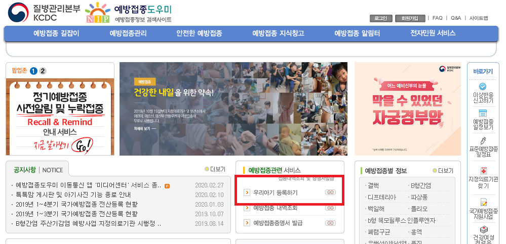 먼저 예방접종사이트에 들어갑니다!!