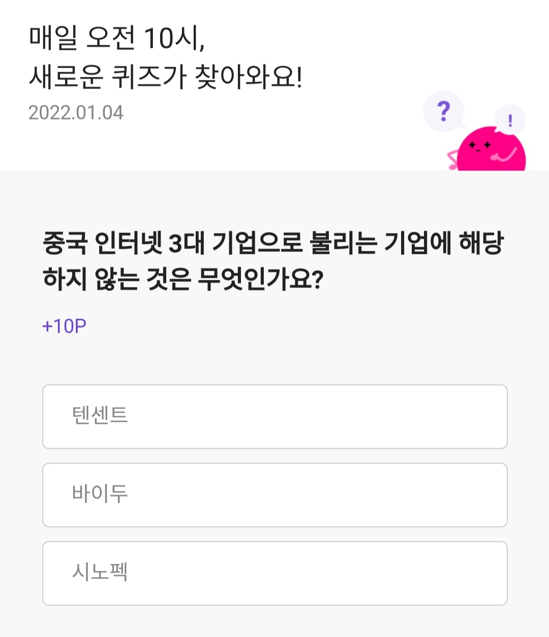 중국 인터넷3대기업으로 불리는 기업에 해당하지 않는것은 무엇인가요?