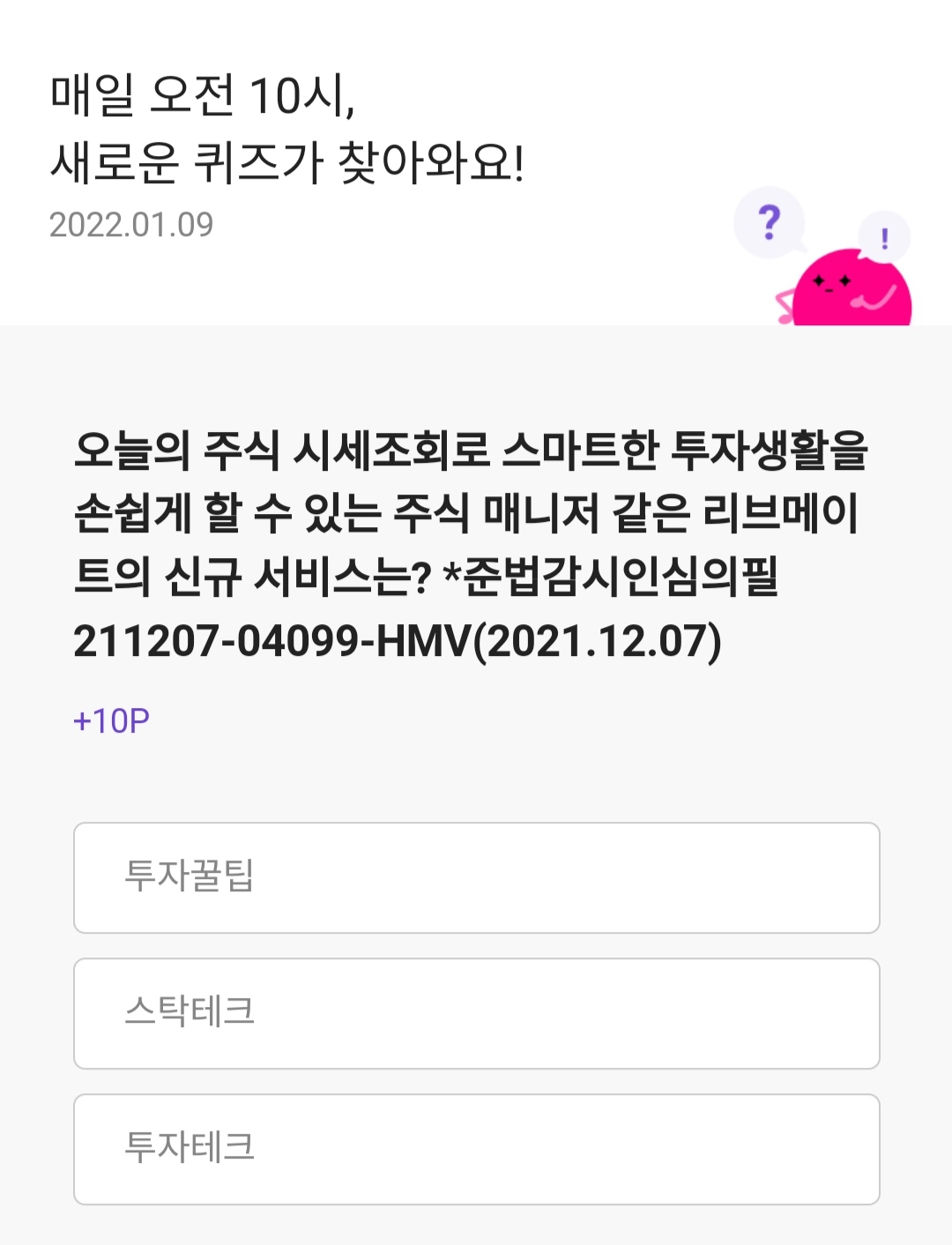 리브메이트 오늘의 퀴즈입니다ㅎ