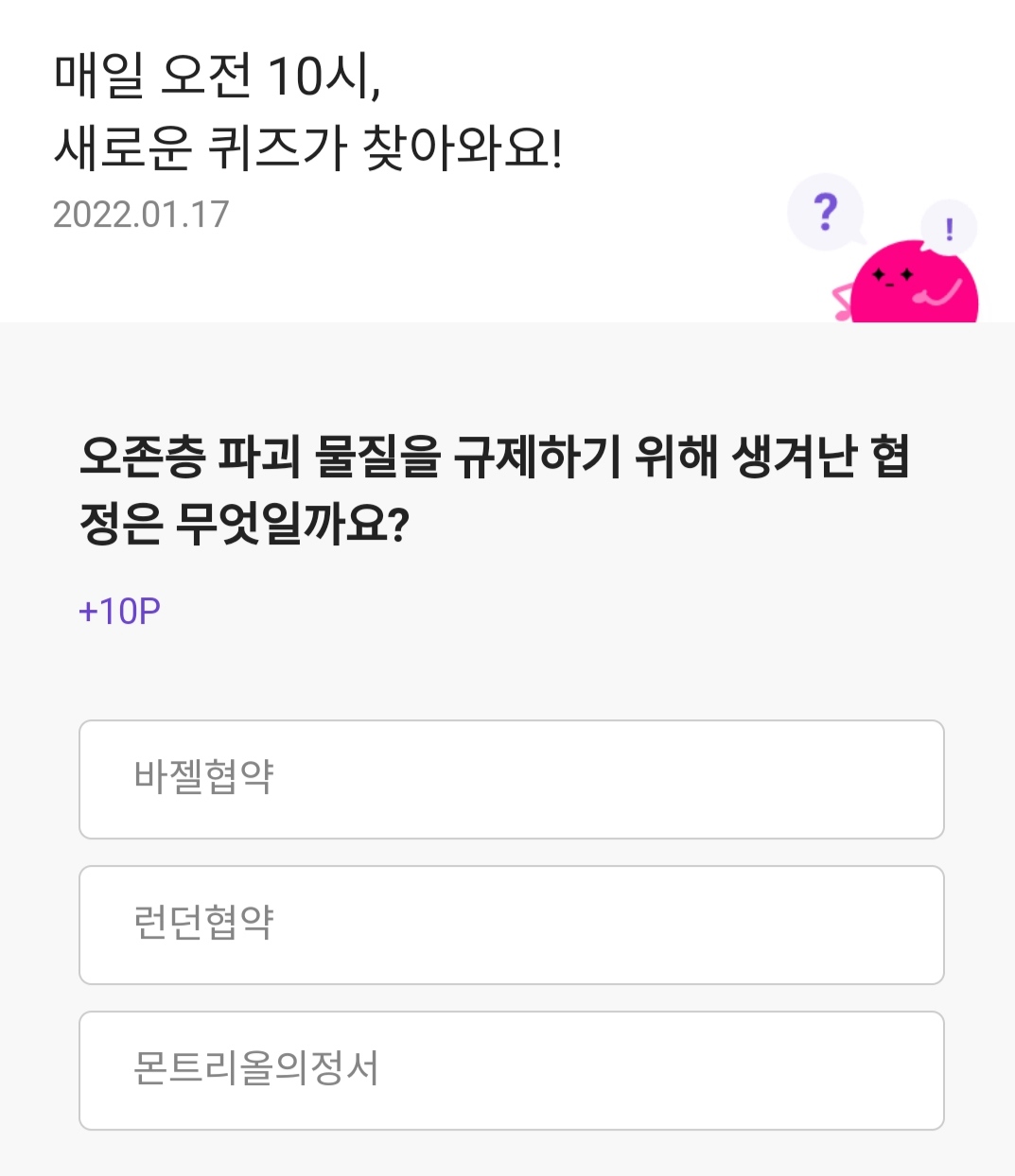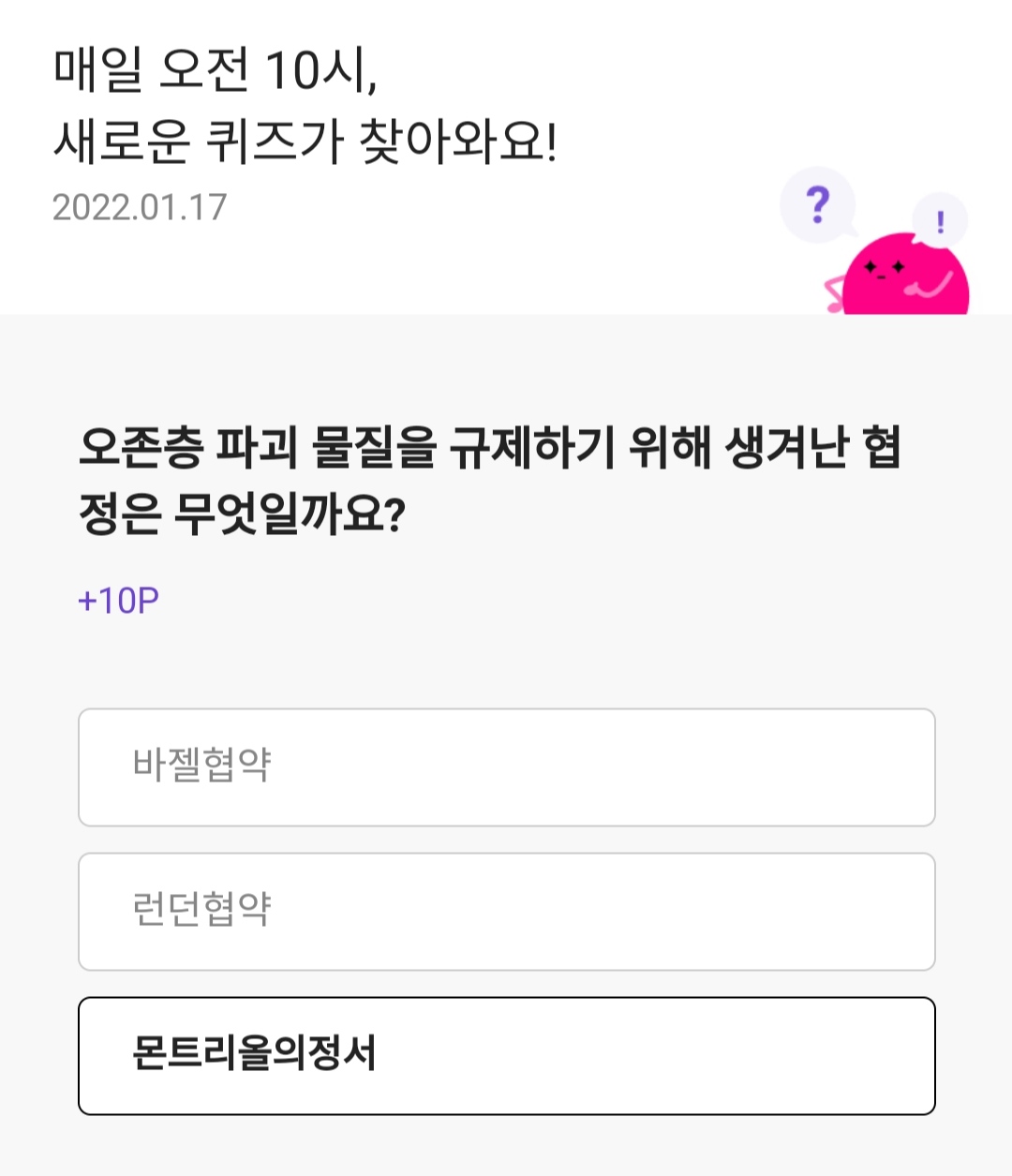 정답은 몬트리올의정서 입니다ㅎ