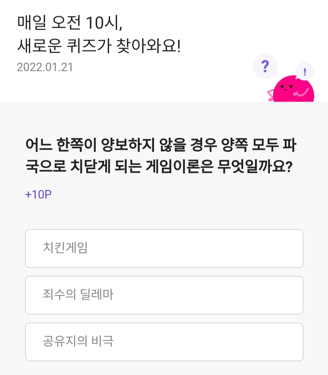 어느한쪽이 양보하지않을경우 양쪽 모두 파국으로 치닫게되는 게임이론은 무엇일까요?