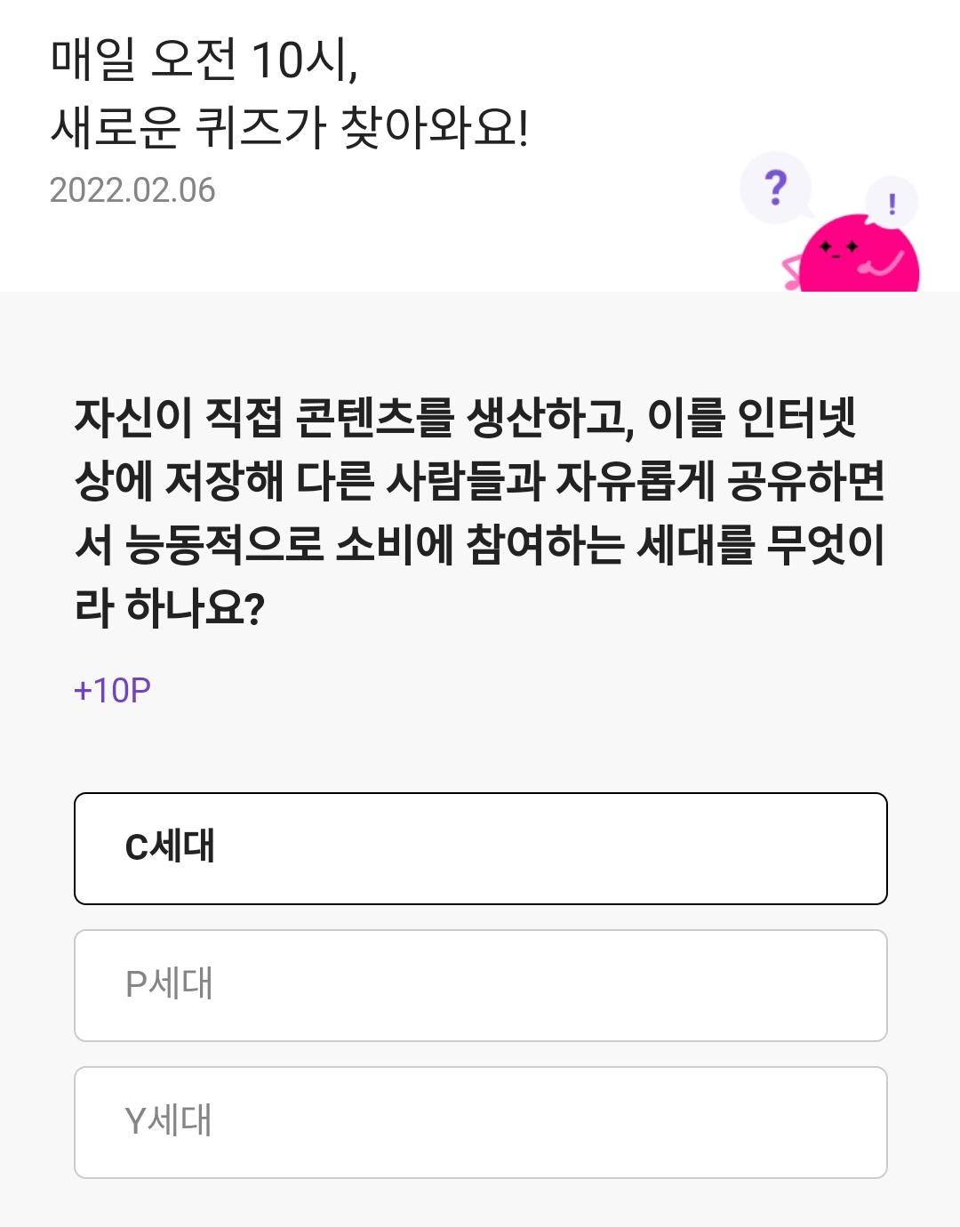정답은 C세대 입니다ㅎ