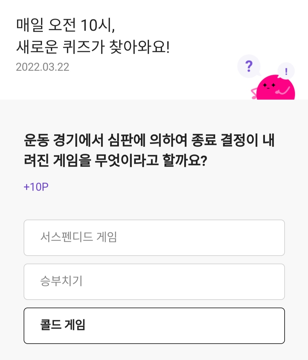 운동경기에서 심판에 의하여 종료결정이 내려진 게임을 무엇이라고 할까요?
